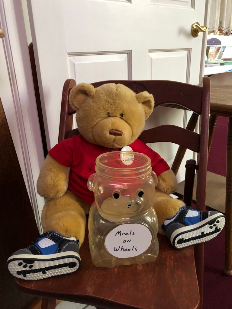 Stu Bear (short for Stewardship Bear) is a resident at our church who reminds us that everything we have belongs to God and God asks us to share it with others. Each Sunday we put a dollar in Stu-Bears Jar (and 2 on Dress Down Day). Each Quarter Stu Bear supports a different ministry.